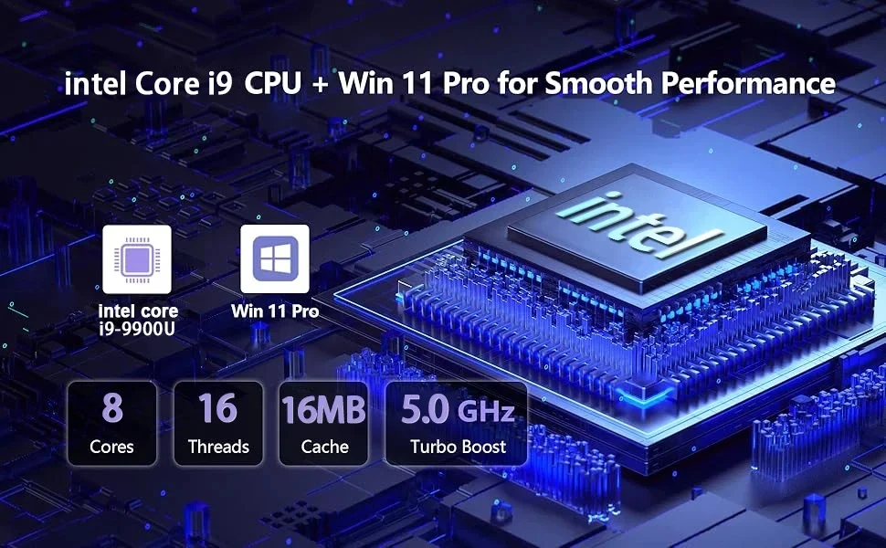 [Intel I9 Processor]:Intel i9-9900U, 8-core CPU, low power consumption and high performance.