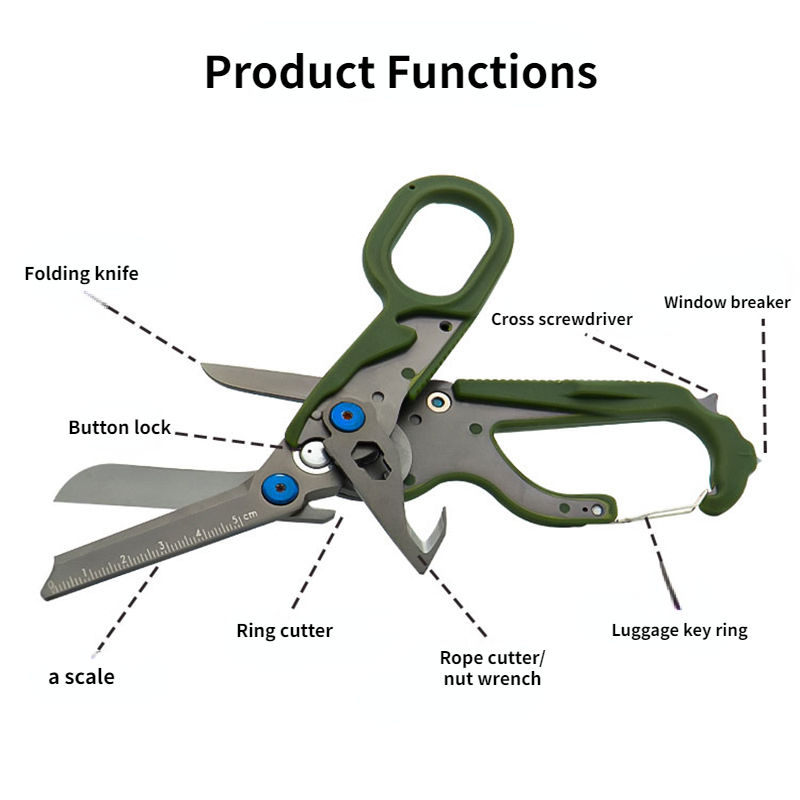 Functions: cutting cloth, cutting branches, twisting screws, cutting ropes, breaking Windows and so on.