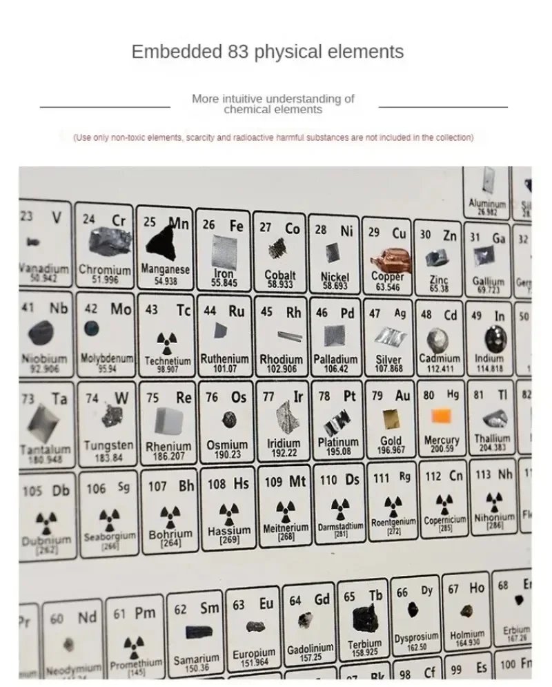 Acrylic Real Elements Periodic Table Mendeleev Periodic Table Figurine Display Science Ornament Room Decoration Desk Accessories