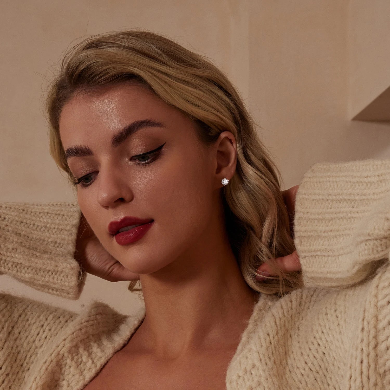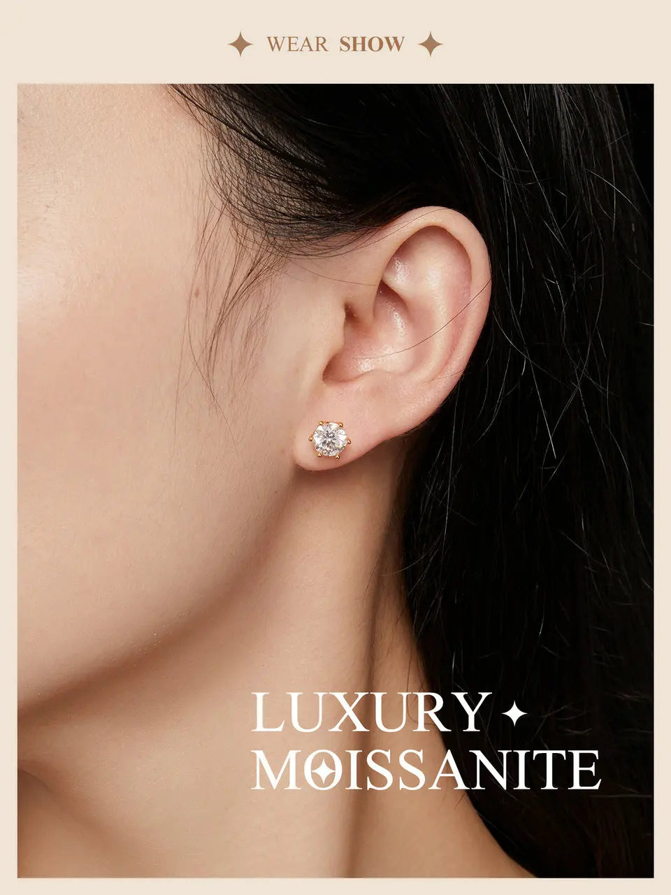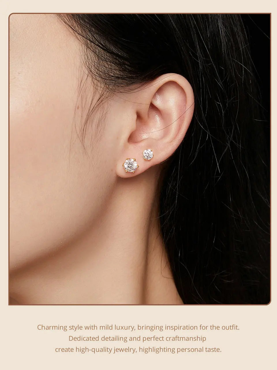 BAMOER Classic Moissanite Stud Earrings, S925 Silver 6 Prongs D Color Round Cut Lab Created Diamond Wedding 18k Gold Earrings