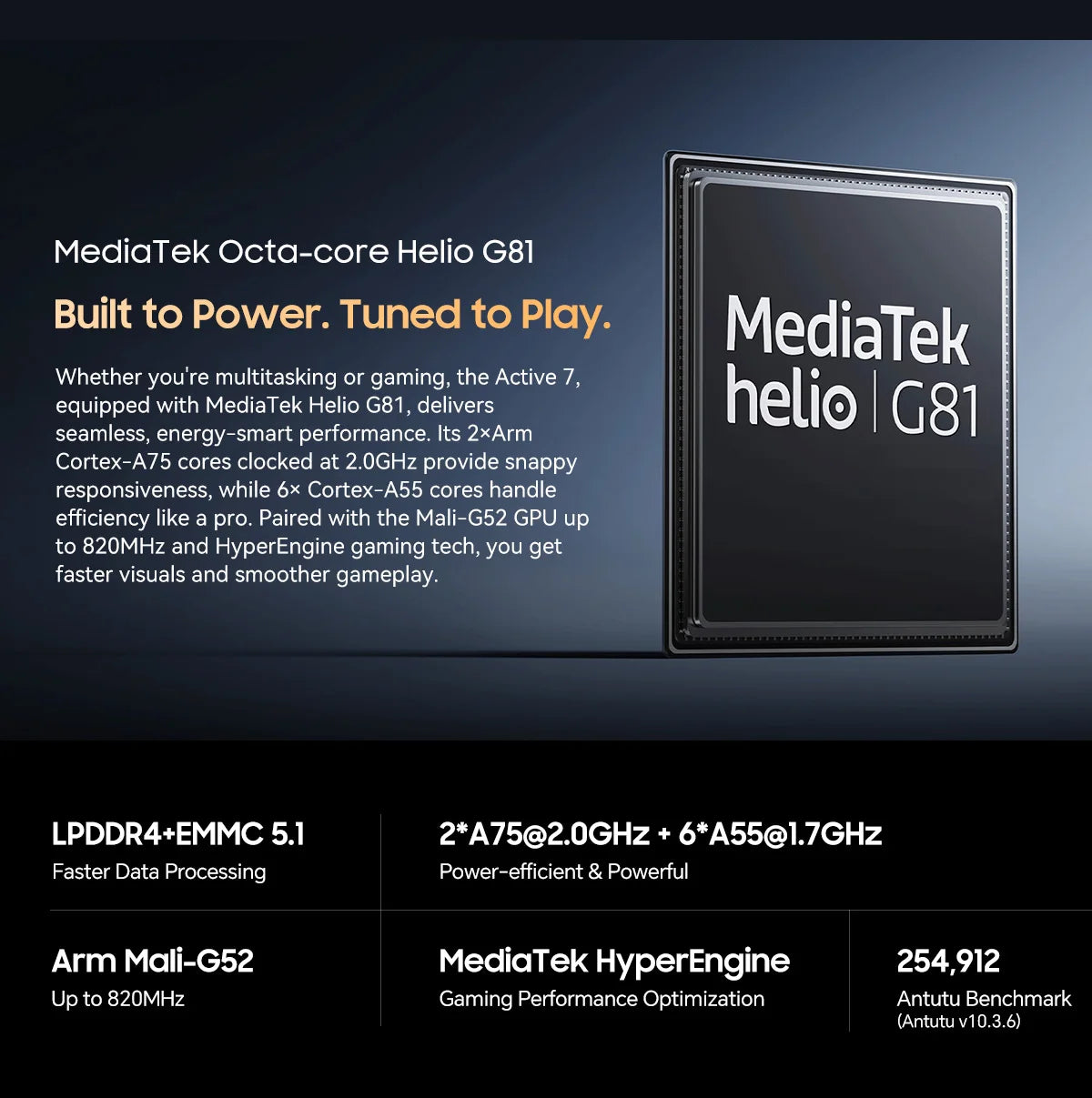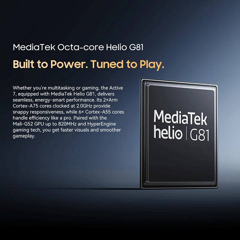 CPU: Octa core MediaTek G81, Up to 2.0GHz