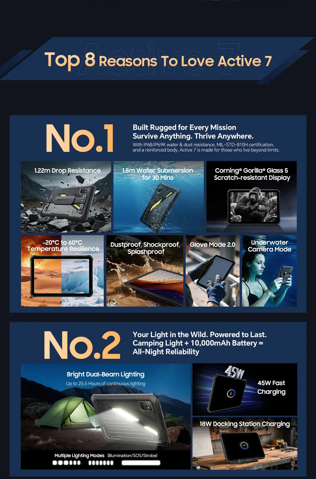 Rugged Rating: IP68 & IP69 K; MIL-STD-810H