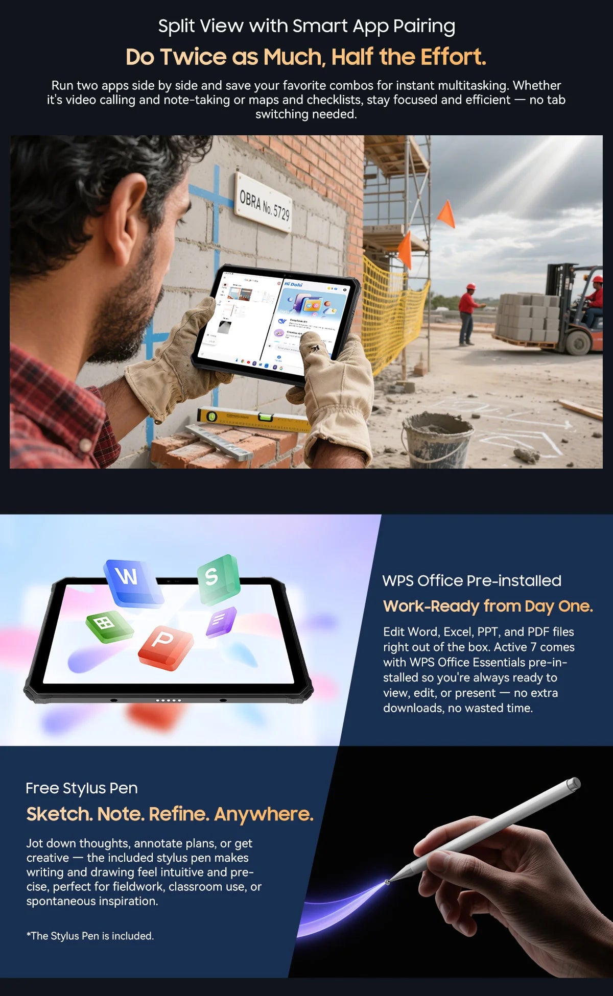 Blackview Active 7 RuggedTablet 11-inch FHD+ Display Octa-core Android IP68&IP69K 10000mAh 45W Charger Outdoor Pad PC