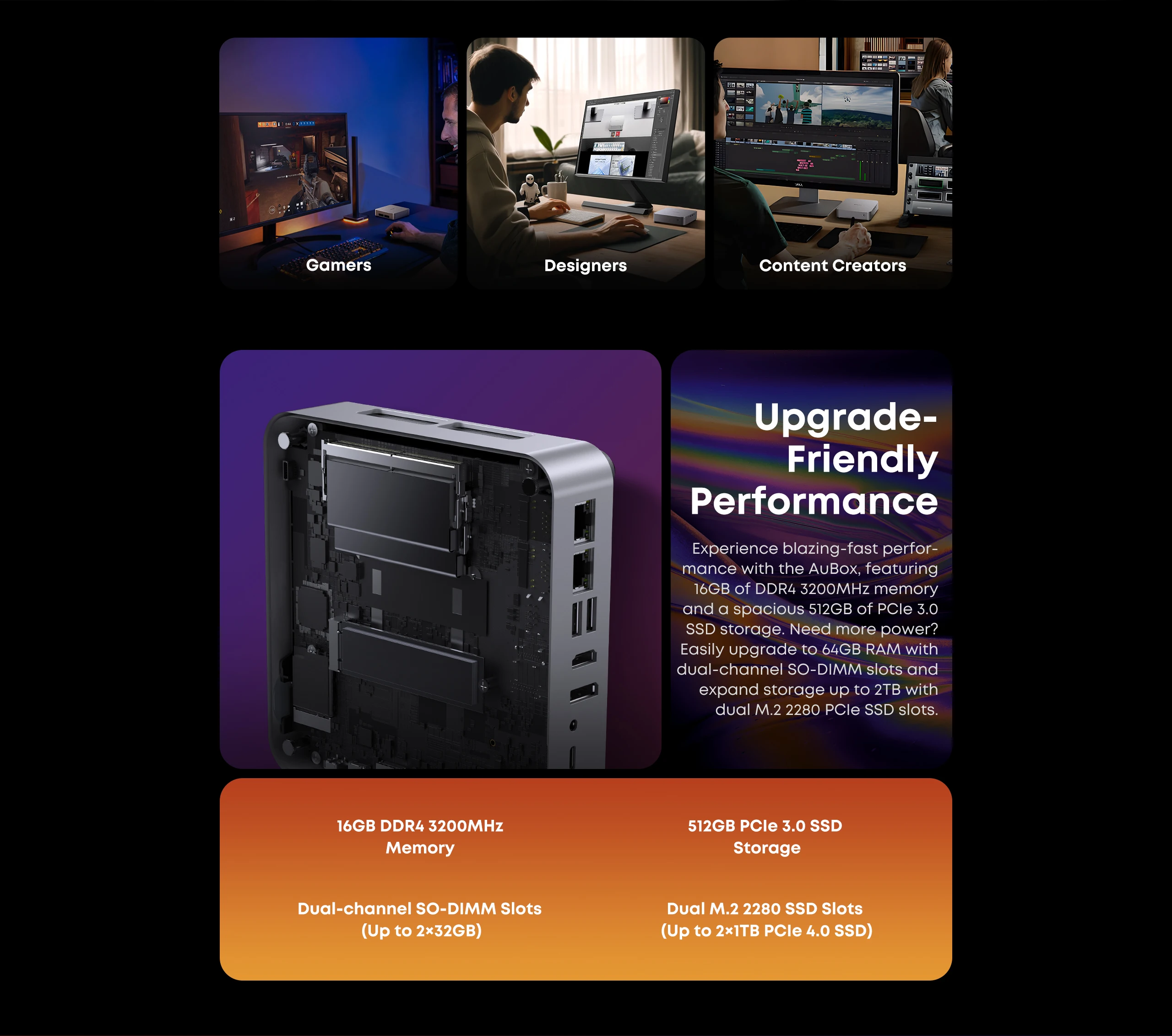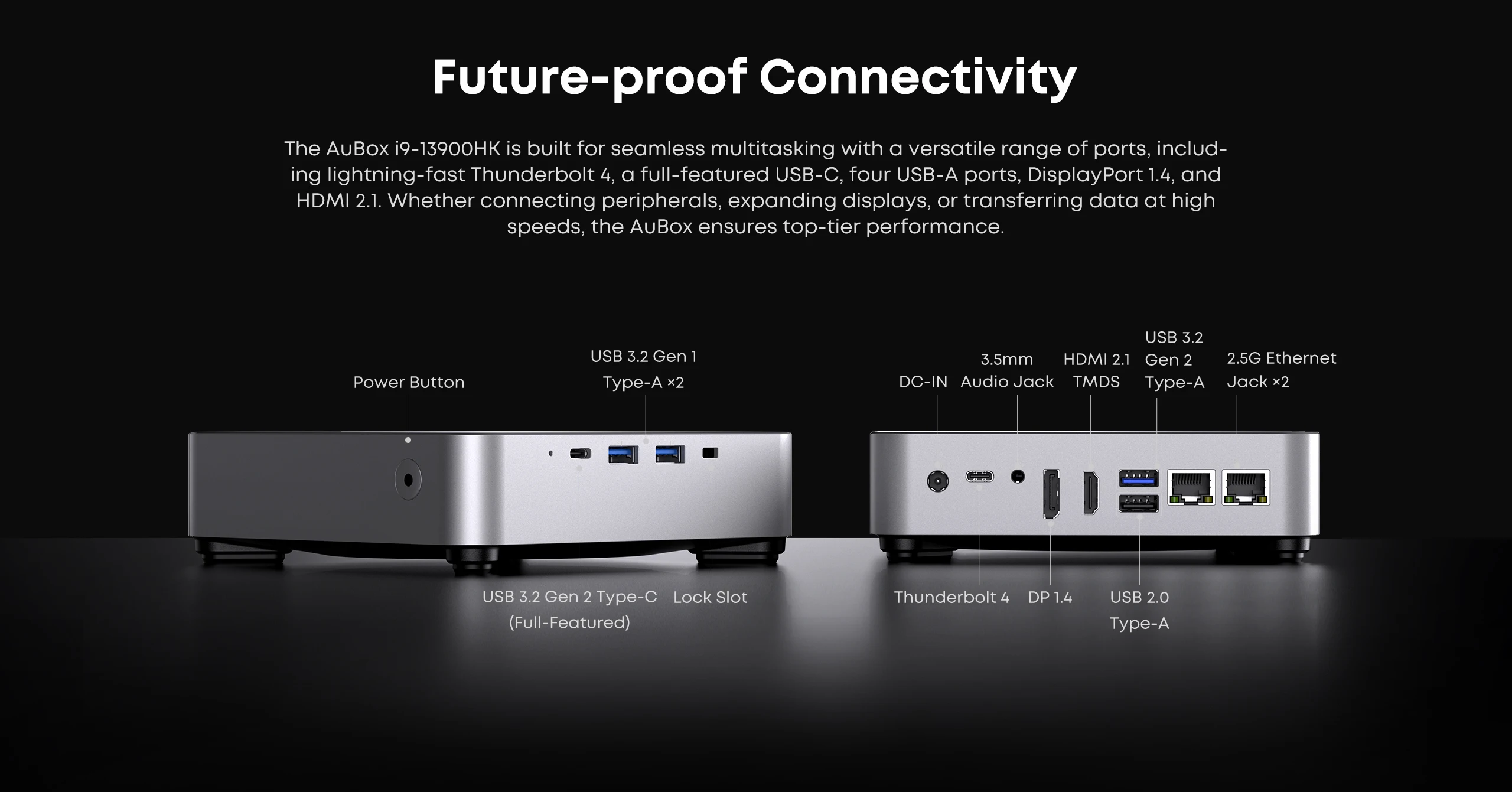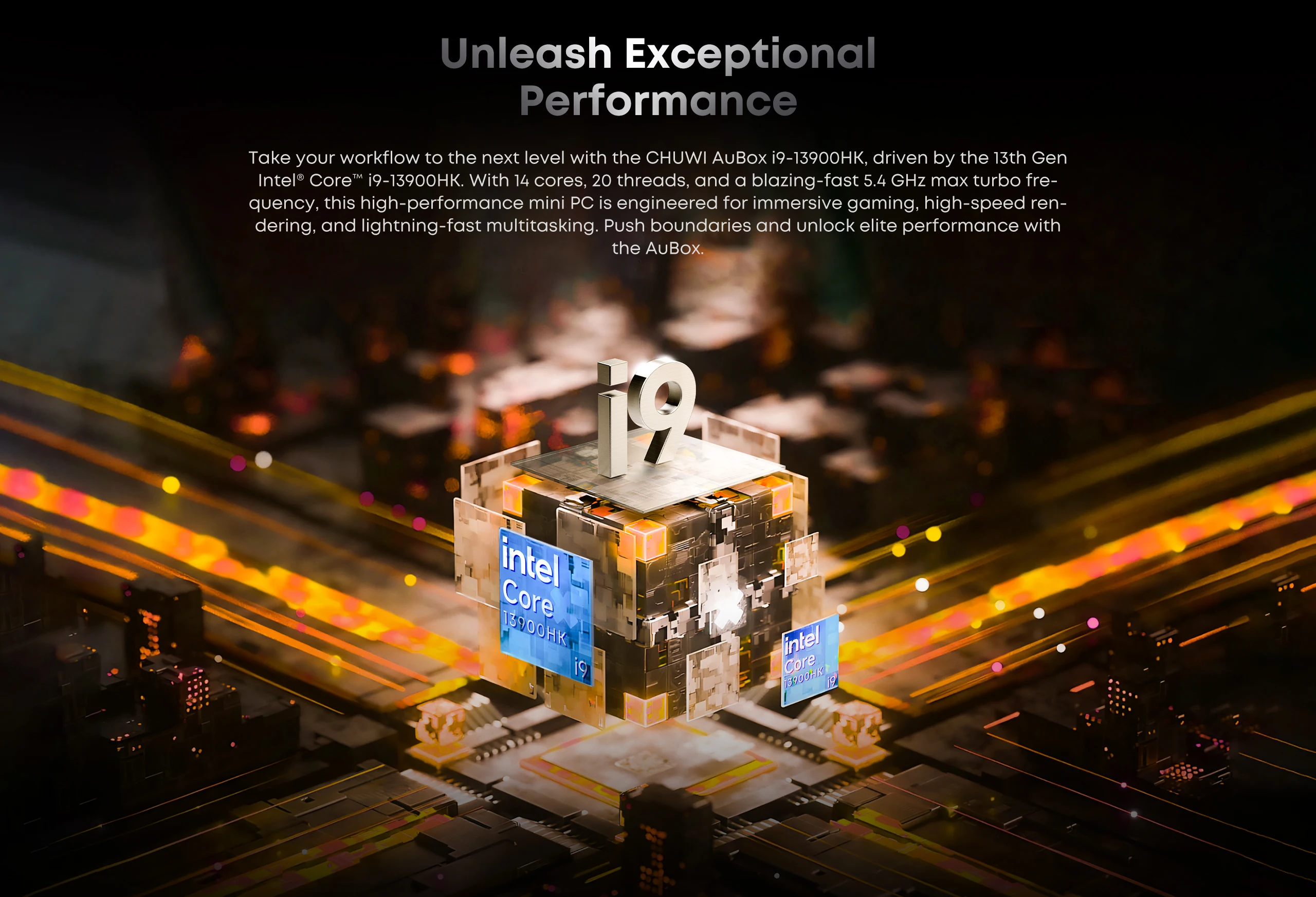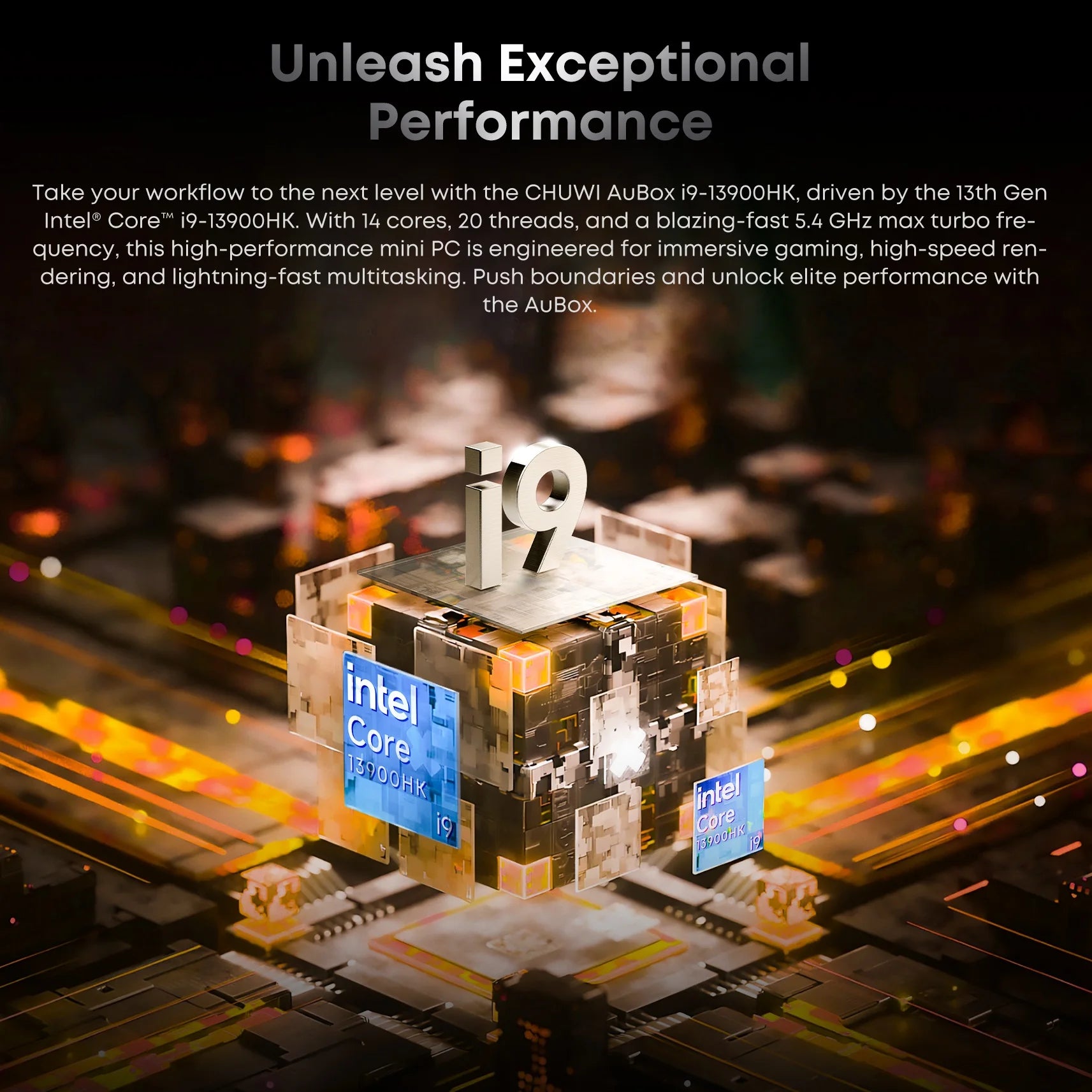 CHUWI AuBox Mini PC i9-13900HK 14 Cores 32GB DDR4 1TB SSD 16GB DDR5 512 SSD Windows 11 Pro WiFi 6 BT 5.2 Extend M.2 1T*2 Desktop