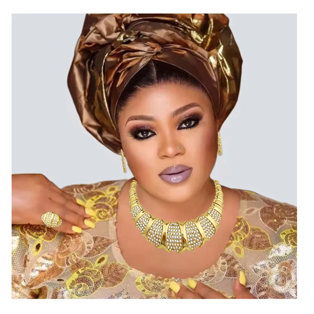 Dubai Jewelry Set For Women 18K Gold Plated Luxury Necklace Earrings Bracelet And Ring Set Jewelry For Wedding Party Trending