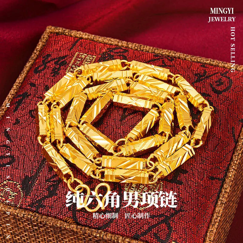 Hip Hop Style Gold Plated Color 6mm-8mm Hexagonal Men's Fashion Necklace Jewelry Party Birthday Gift