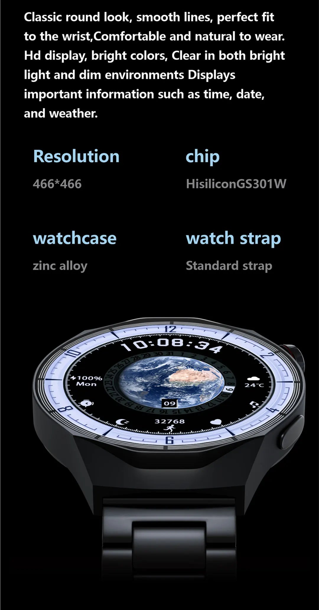 ♦Screen: 1.73 inches AMOLED screen, 466*466 resolution
