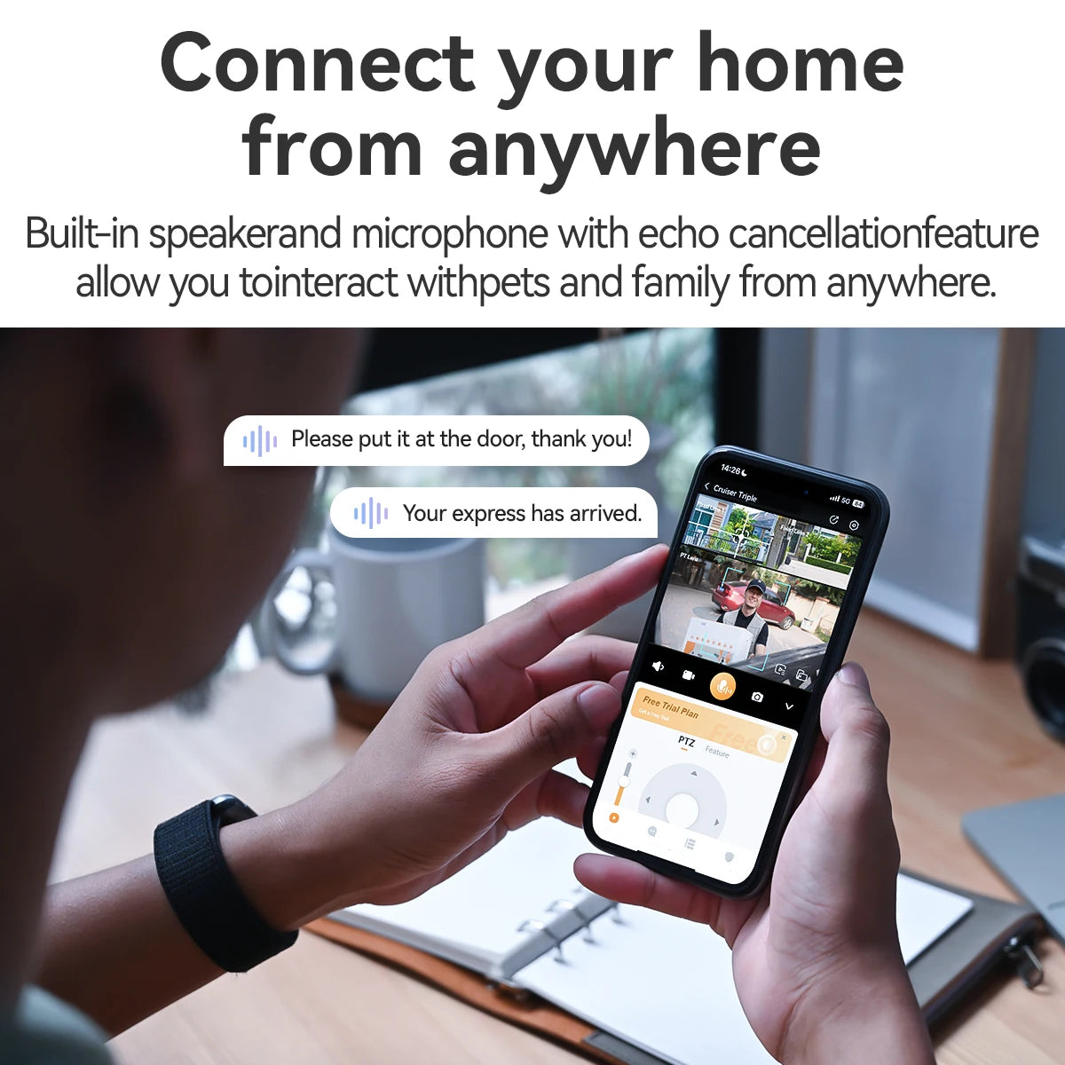 Built-in speakerand microphone with echo cancellationfeatureallow you tointeract withpets and family from anywhere.