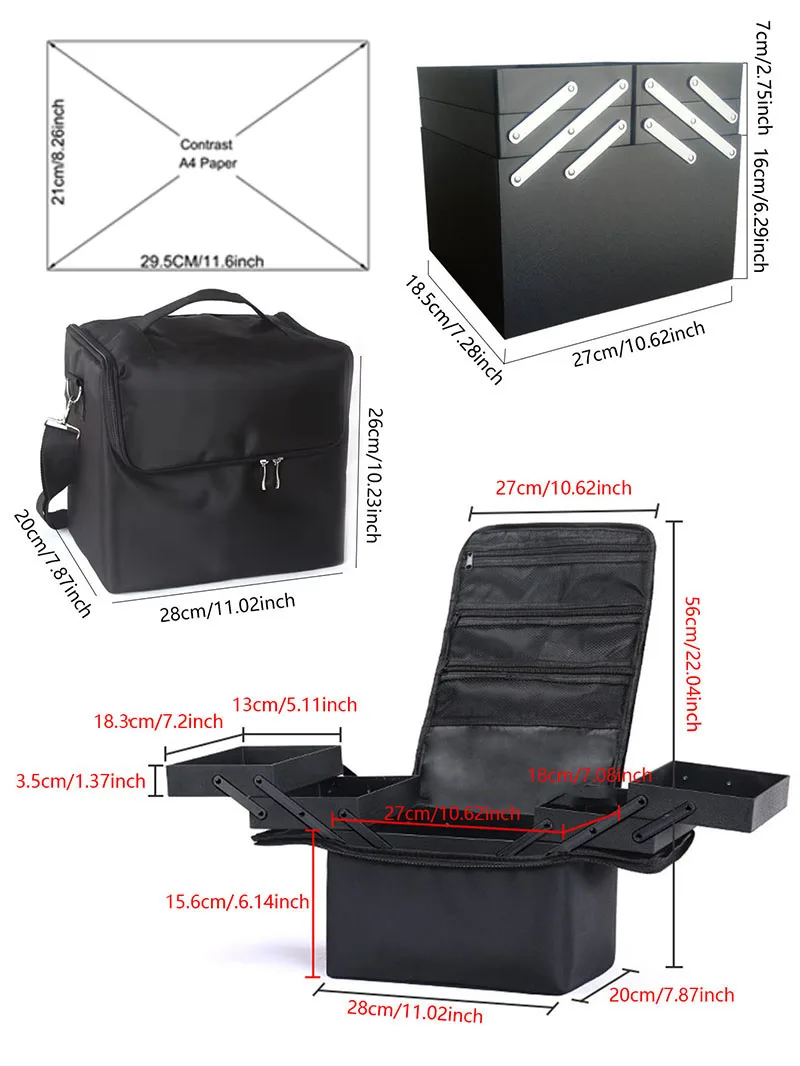Large Makeup Carrying Train Case For Women Manicurist Toolbox 4 Tier Storage Box Travel Makeup Case Professional Nail Organizer