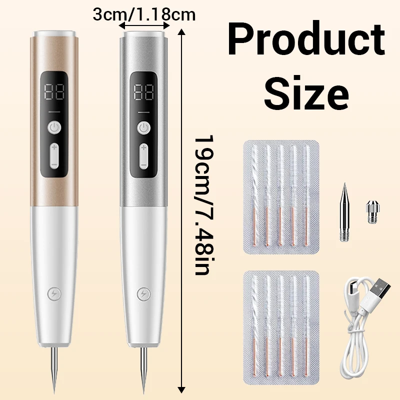 1.Adopting ionized carbonization technology, our mole removal pen can accurately control the current, quickly dilute the melanin, and restore your flawless skin without hurting the skin, bleeding and side effects.
