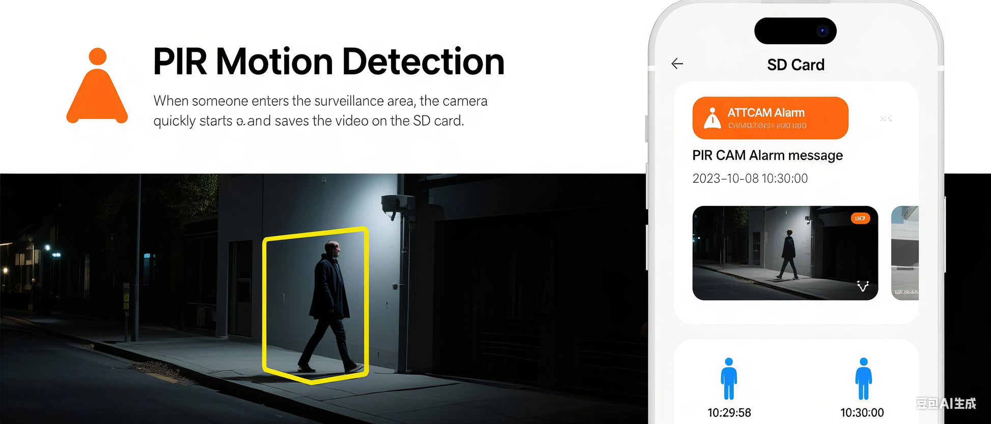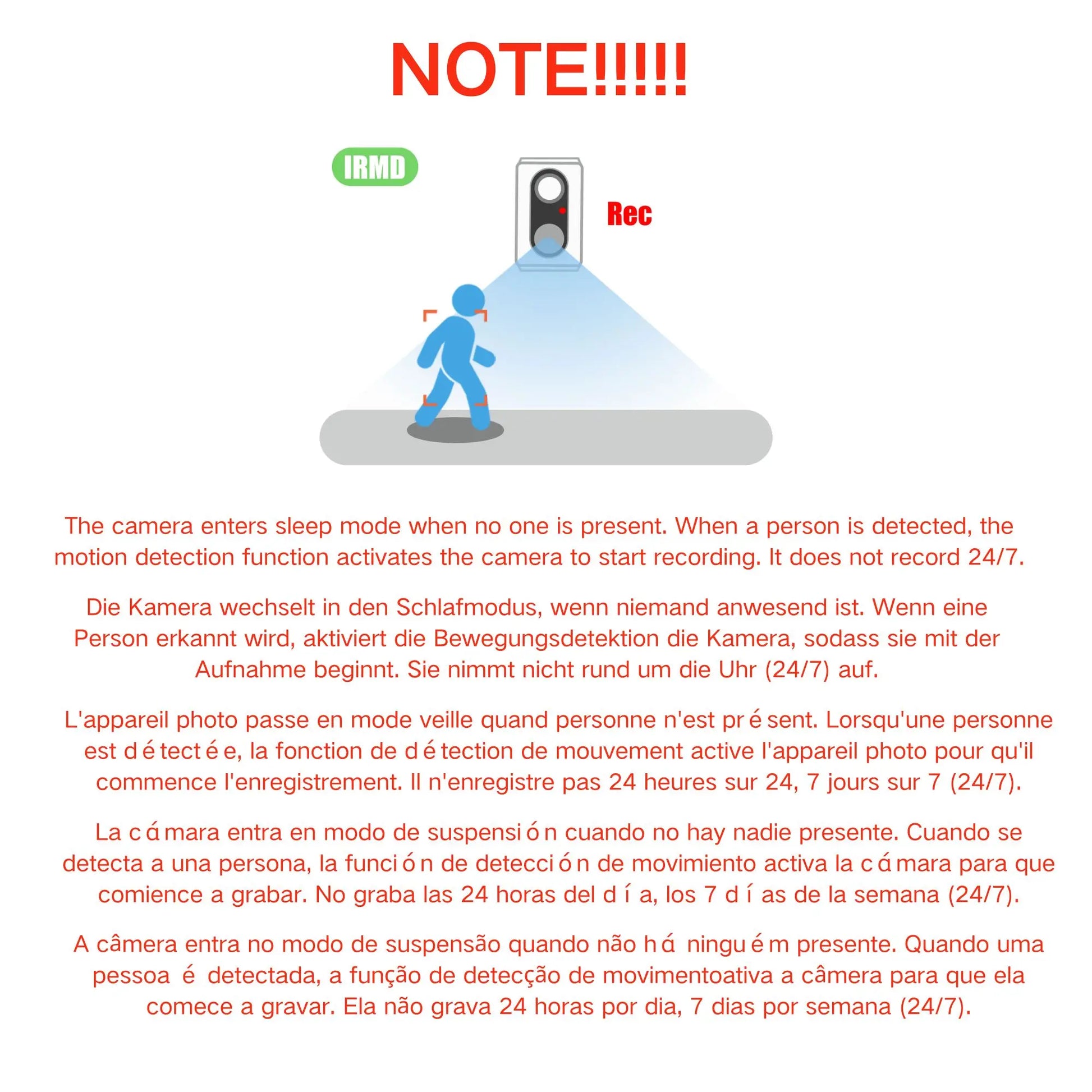 *【PIR motion detection】When someone enters the monitoring area, the camera starts and starts recording; when the person leaves, the camera enters sleep mode.