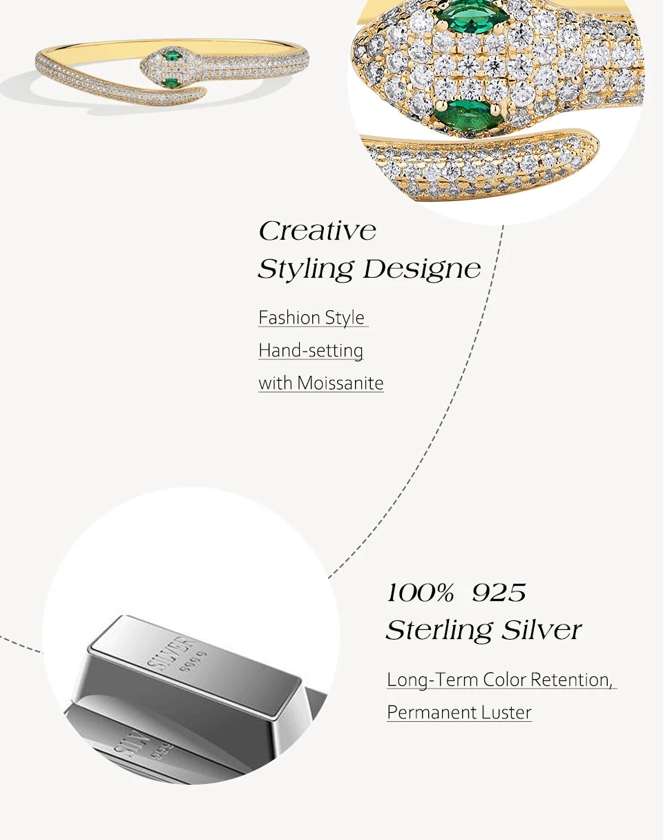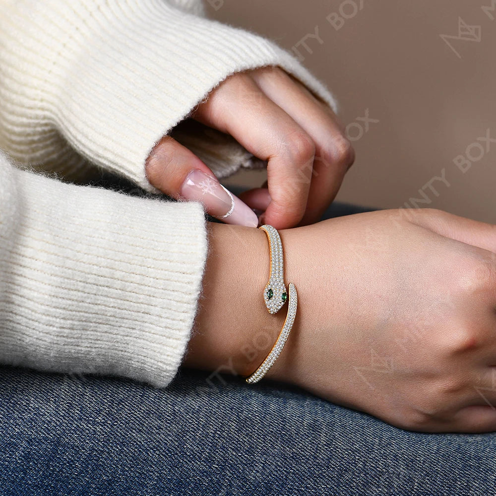 MINTYBOX Snake S925 Silver Moissanite Bracelets for Women Lab Diamond 16-19cm 18k Gold Plated Wedding Luxury Fine Jewelry Gift