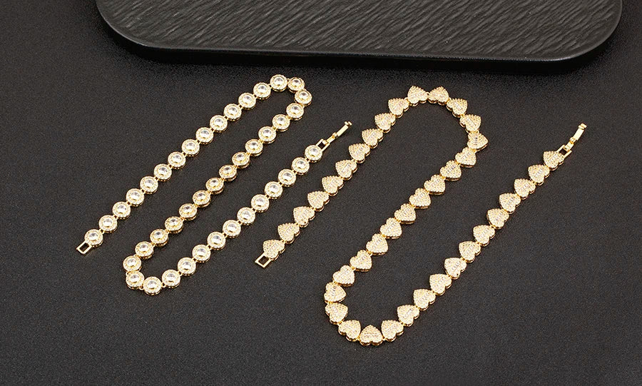 Nidin New Arrival Romantic Heart/Round Shape Shiny Crystal Zircon Chain Necklace For Women Female Valentine's Day Jewelry Gifts