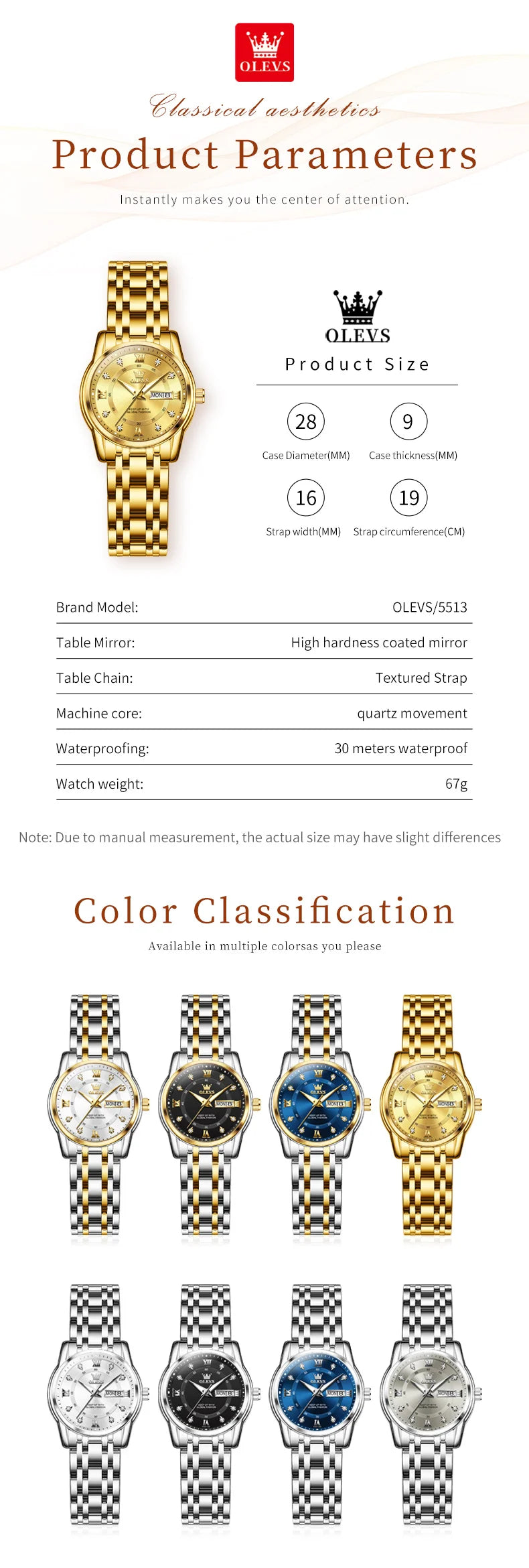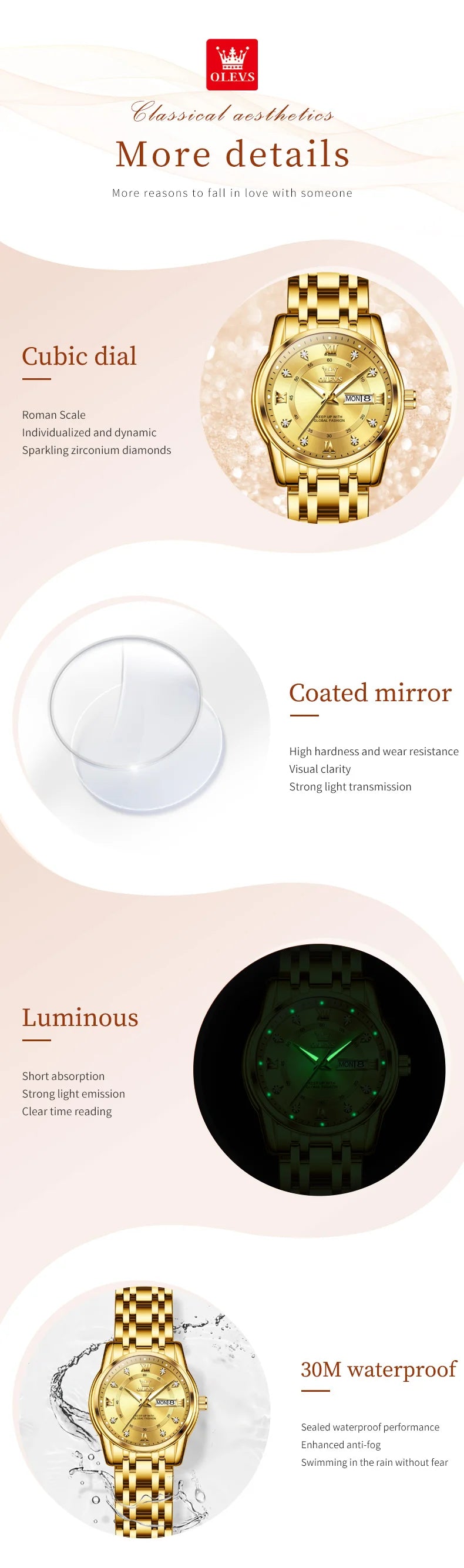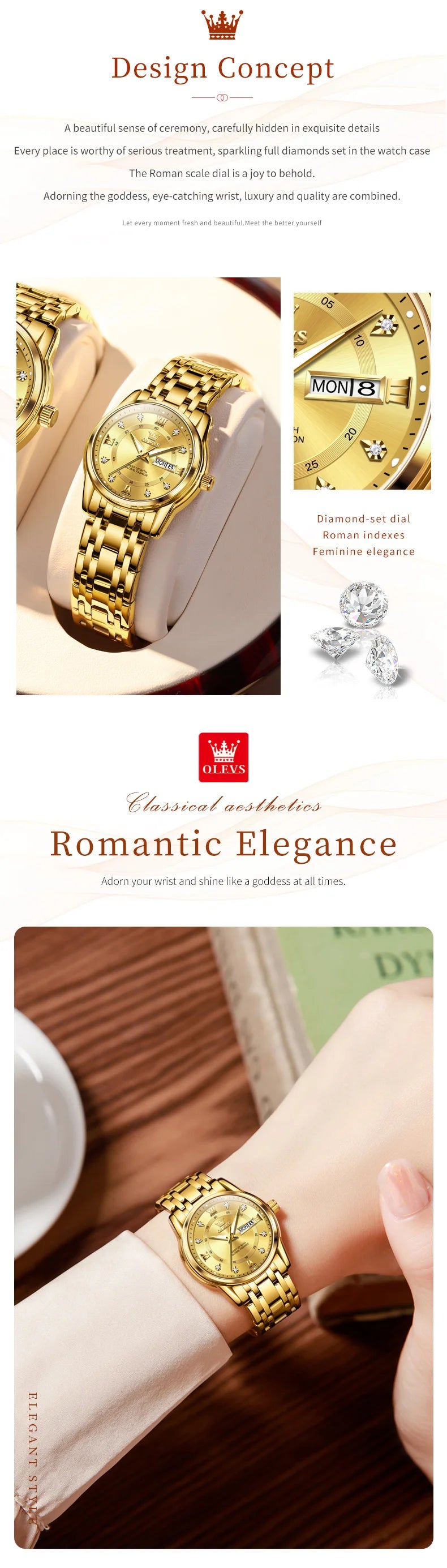 OLEVS Best Selling Fashion Stainless Steel Quartz Ladies Watch Luxury Dual Calendar Luminous Waterproof Elegant Watch for Women