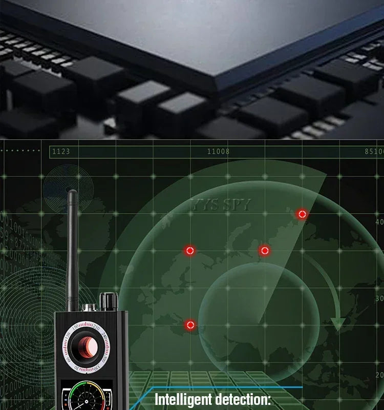 【Upgrade military quality】Using advanced chips,The improved one is easy to operate and portable. Stronger anti-jamming and wider range of detection frequency.this product has modes of laser scanning, RF wireless signal detection, magnetic field signal detection and so on. With high sensitivity and strong anti-interference ability, it can accurately detect various eavesdroppers, GPS locators, trackers, 1.2G~6.5G wireless camera, 2G/3G/4G signal from SIM card bug and other equipment.