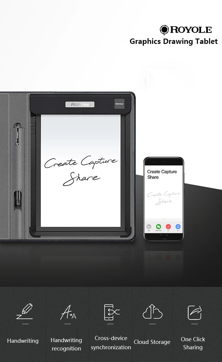 ROYOLE Bluetooth Digital Writing Pad - A5 Smart Notebook Graphics Painting Tablet Cloud Storage iOS/Android