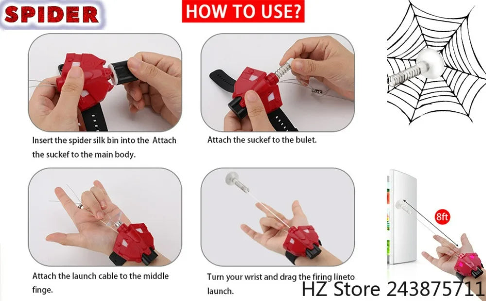 Spider Web Launcher with light String Shooters Toy Gadgets String Shooter Superhero Role-Play Cool Stuff Fun Toys Halloween Gift