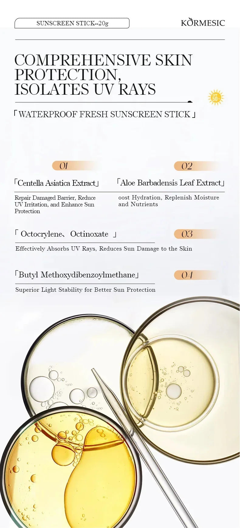 Sunscreen Cream Stick SPF 50+ UV Protective Anti Oxidant Sun Block Isolation Cream Lightweight Korea for All Skin Type Cosmetics
